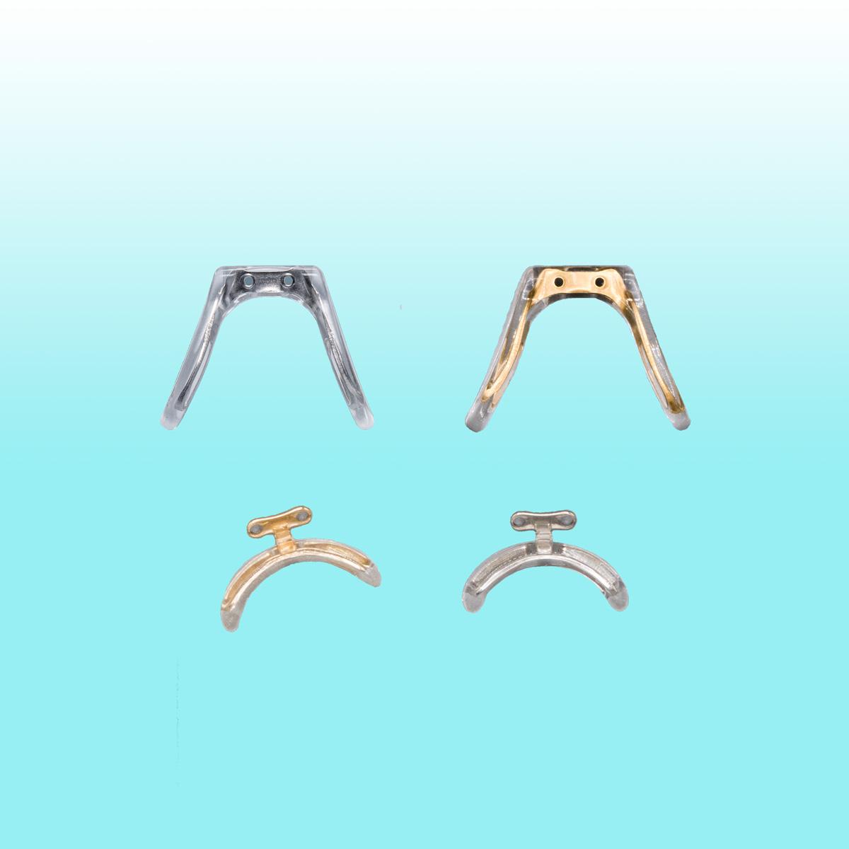 Potrai scegliere tra naselli per montature in metallo o in plastica, Maskwing o Softharmony, con inserto color oro o argento.